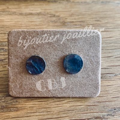 Petites boucles d'oreilles pour femme, jeune femme ou même enfant, en argent 925 millièmes. De forme ronde le métal est réticulé : état de surface obtenu en chauffant le métal sans le faire fondre, ce dernier froisse (réaction irrégulière). Le bijou est donc unique ! Les boucles peuvent être de couleur argent ou oxydée (noir avec des reflets bleu, rouge....) à vous de faire votre choix !!!