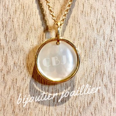 Pendentif tout en rondeur où l'or et la nacre se marient tout en douceur. Simple et moderne ce bijou mettra votre port de tête en valeur, pour une soirée ou dans la vie de tous les jours. Possibilité avec ou sans chaîne à vous de voir !!!